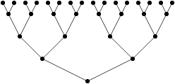 Now suppose that I don’t want to know the number of leaves corresponding to a level, but the number of levels corresponding to a given number of leaves. For instance, I have 2 leaves: that’s level 1. 16 leaves: that’s level 4. 32 leaves, level 5. And if I have 128 leaves, that’s level 7. It gets a bit more complicated if I have, say, 20 leaves. 20 leaves, that’s level “4 and a bit”: I started drawing level 5, and then I stopped because I got too tired to finish.