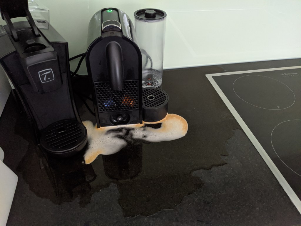 As for the story behind the picture…… well, on Monday morning I started the week with making coffee… and forgetting to put a bowl below the coffee machine. Hilarity (not) and cleaning ensued.