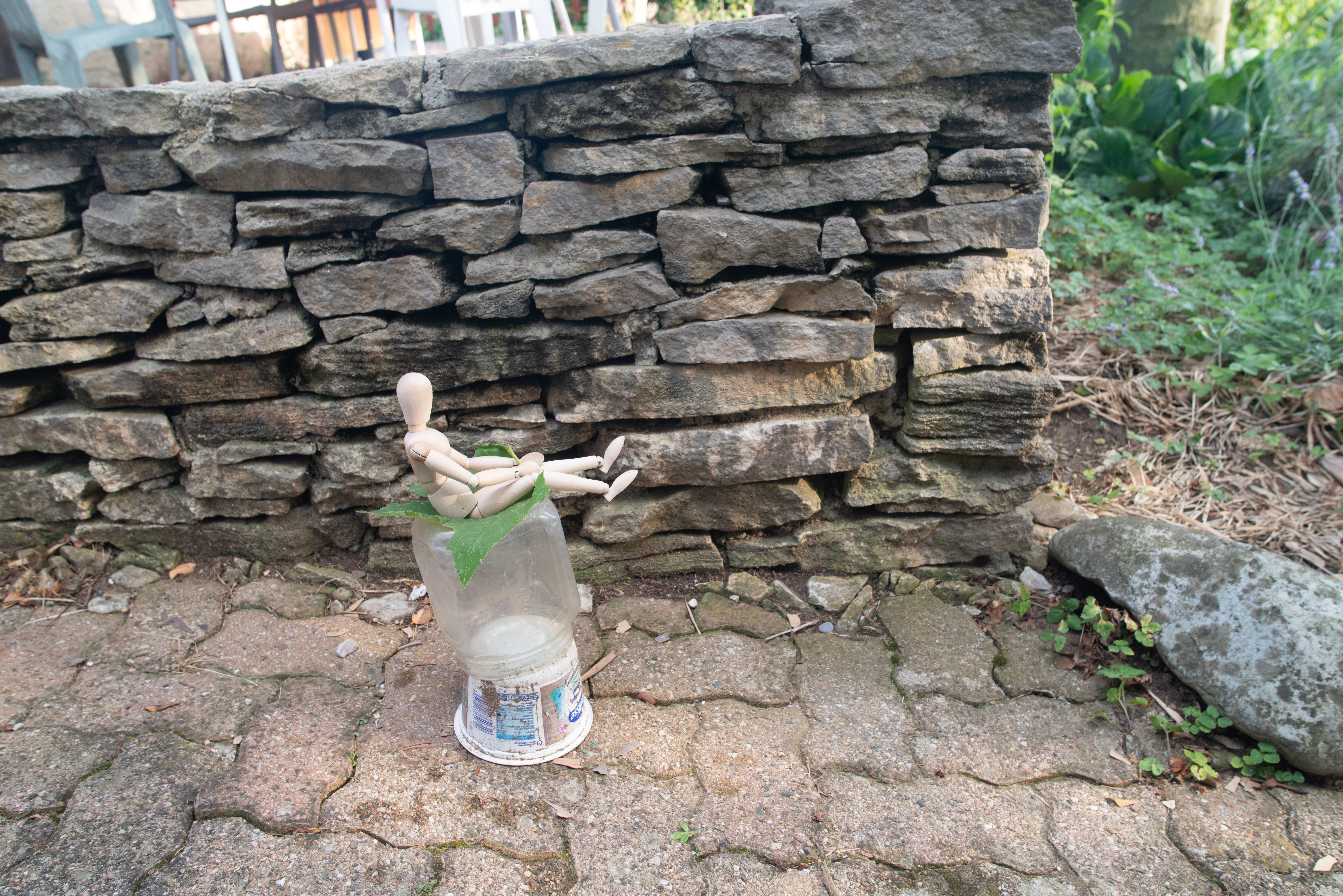 I’m not entirely happy with this composite. Adding the shadow on the ground helped selling it, but I think I overdid it and that it’s too dark. I also have no idea how the shadow and the background blur should have played together, and I’m not convinced I made the right choices there. The manikin/wall delimitation also feels too sharp at places, especially around the leaf. I also have no idea if I did the blur in the right direction and, well, if I can’t make the difference, does it matter? (yes, yes it does 😉 )