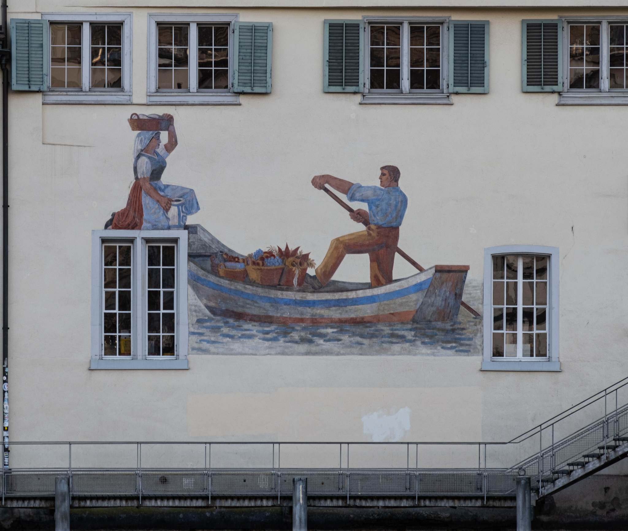 Since then, I also looked into the origin of this painting. It was painted in 1939 by Wilhelm Hartung, who also painted numerous other façades in the city (including one very close to my apartment!), and I apparently have a Wikipedia page to translate to French and English 😉