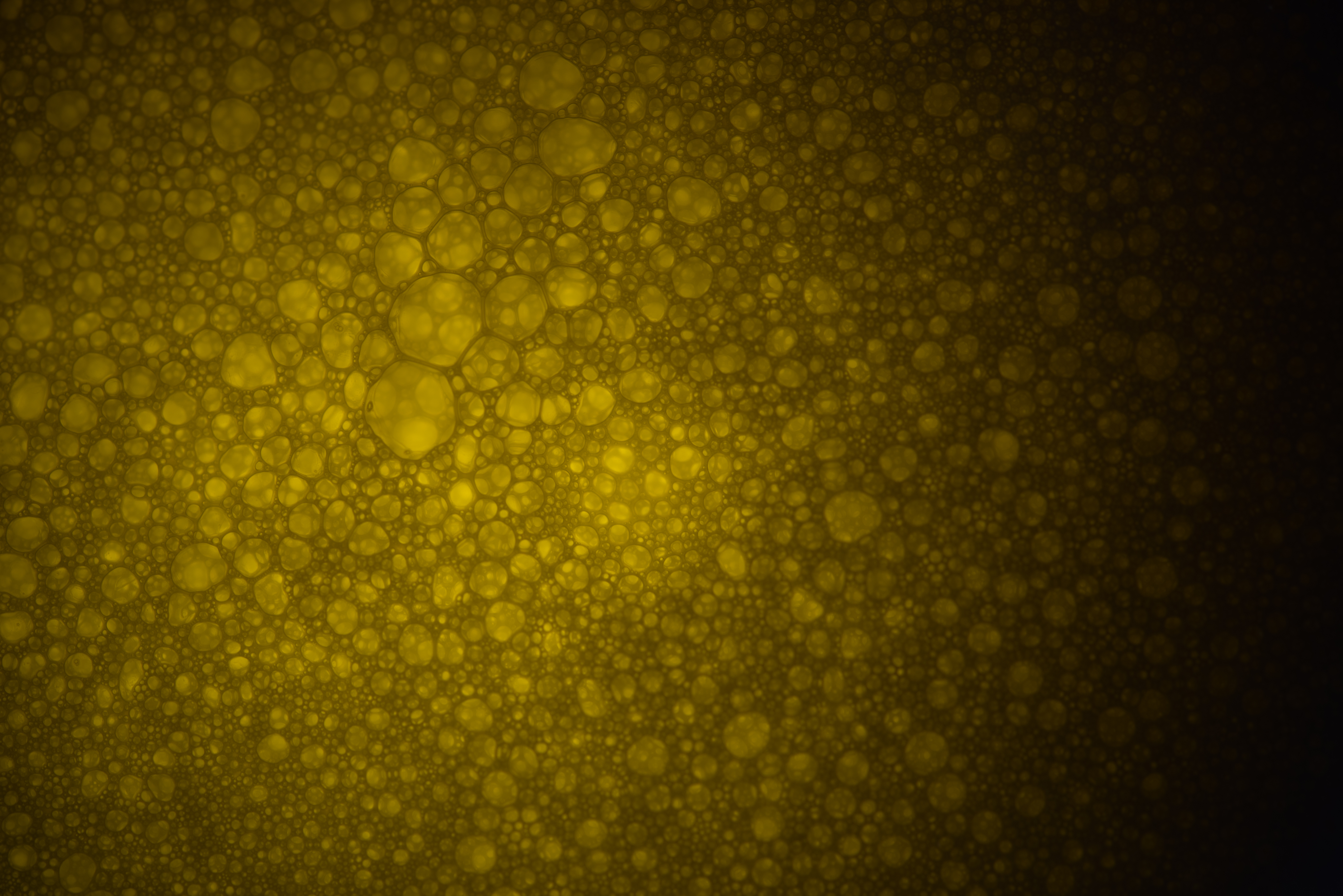 For White, I went for bubbles, but not the oil-in-water kind. I recently bought a new coffee machine that also has a milk system; for this picture, I used that to get a white foam! I lit it from below, and my camera thought it was far more yellow than it actually was, but I still liked the bubble structure very much, so that’s what I ended up editing and submitting.