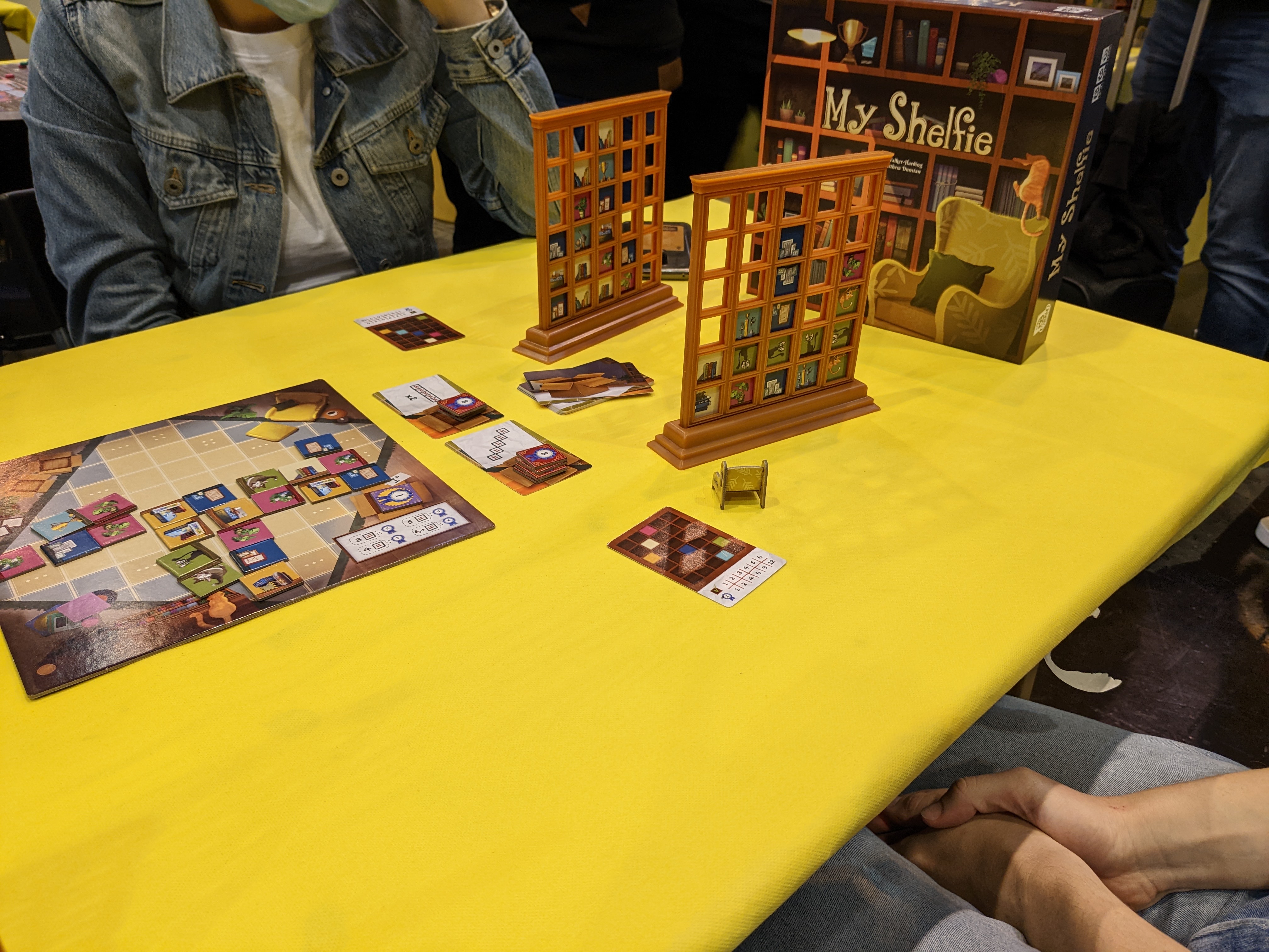 A game where you have to fill in a brand new shelf with various items, and try to fulfil various constraints to score points. The vertical play is pretty gimicky but very cute, but the tile setup felt too finicky. Probably a good candidate for BGA, though.