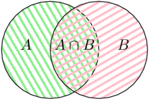 If I count everything that is in the green area (corresponding to event ), and everything that is in the pink area (corresponding to event ), I count twice what is both in the green and pink area; if I want to have the correct result, I need to remove once what is common to both areas.