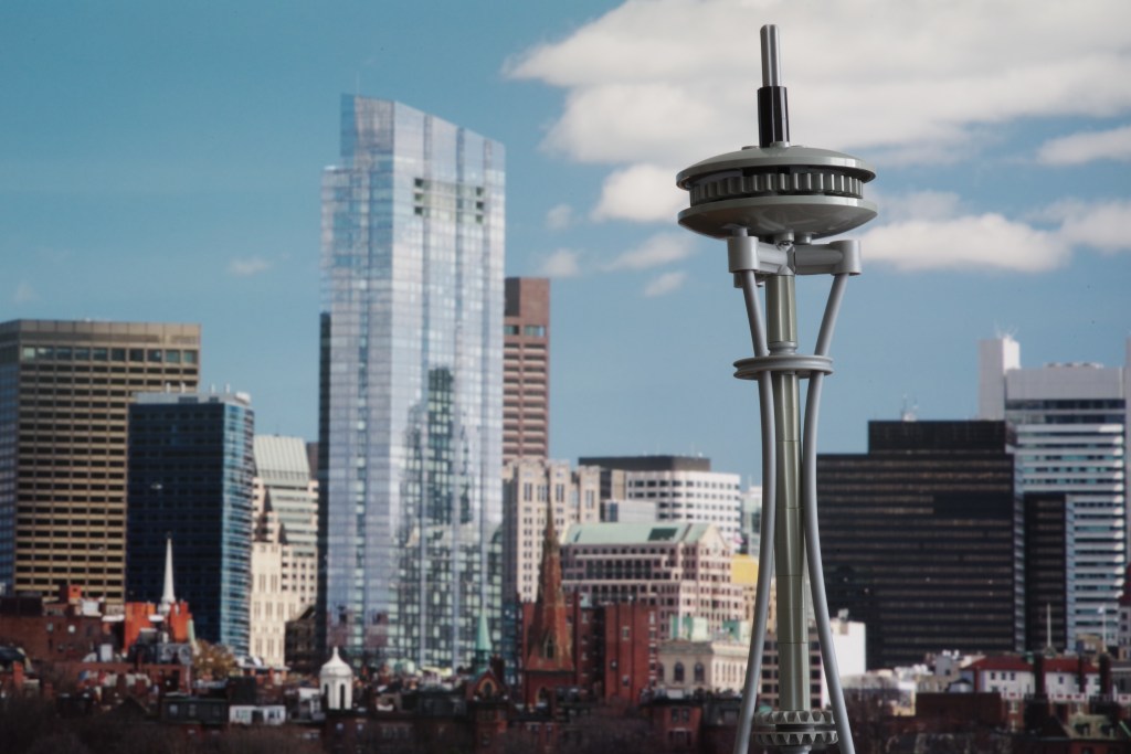 Okay, this was FUN. It took me a little while to remember that we had a LEGO model of the Seattle Space Needle somewhere – so that gave me a direction. (It missed the top part, so I hadto rummage into my LEGO collection to find a way to fix it, that also took a little while, but I think it works.)