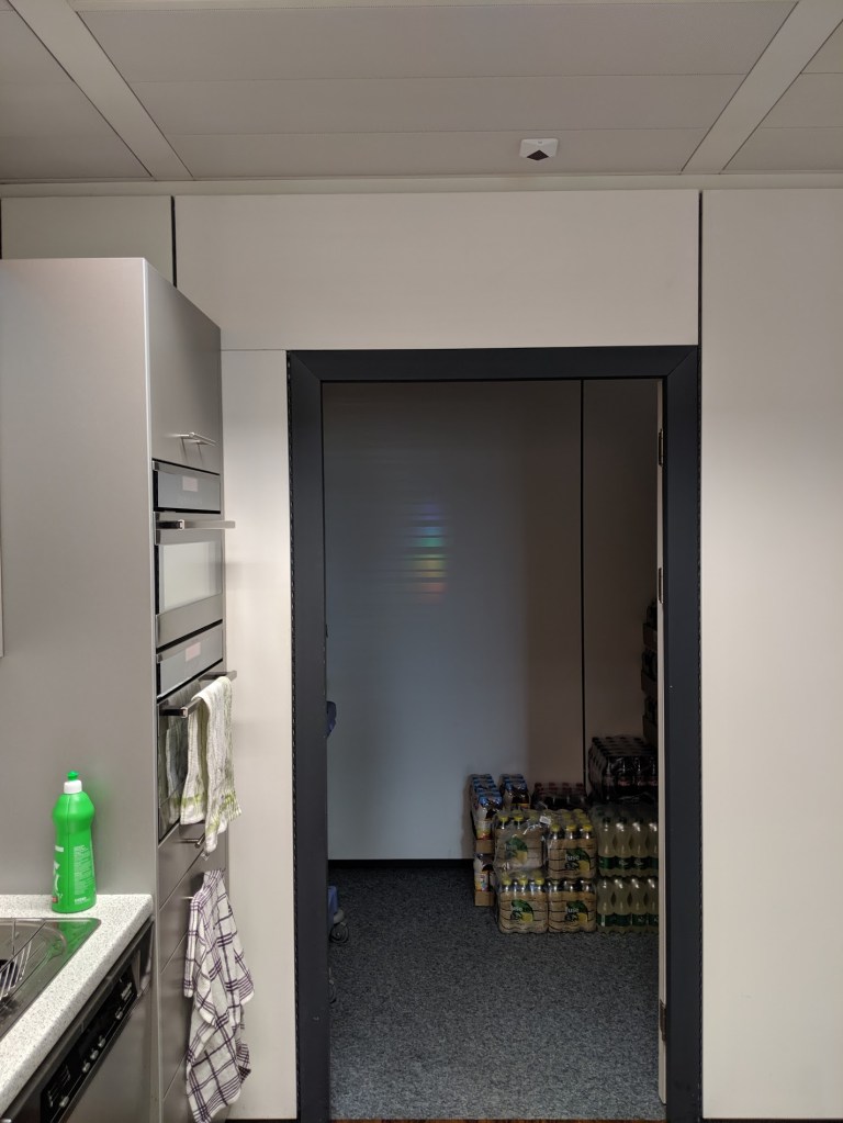 I must admit it made me smile (and then hunt down HOW that rainbow actually appeared – I think the bottom of one of the glass doors was hit by the sun in just the right way at the right time ๐