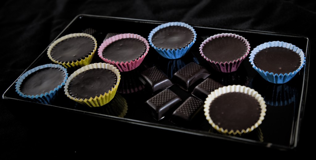 Thankfully, my husband is NOT lazy, and he made some delicious peanut butter chocolates today. And is there anything better than dark chocolate for a low-key theme? I don’t think so. So, there: chocolate.