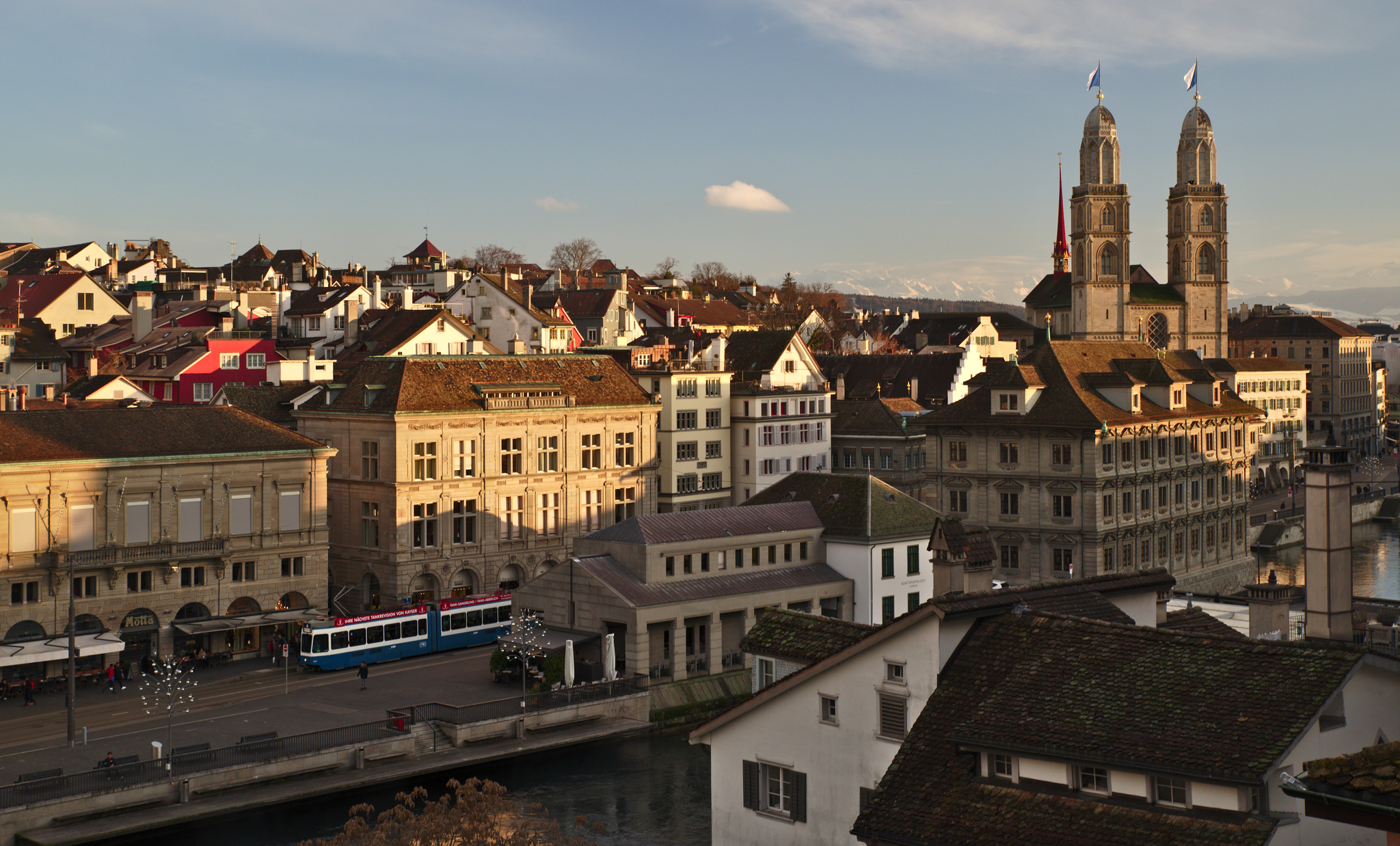 The theme for 52Frames last week was “Hello from…”. And it so happened that we’ve had very good weather – to the point that I said “YESS” when arriving on top of Lindenhof and seeing the Alps in the background. I wanted to go for a very “classical” shot of the city, and the one from Lindenhof is my favorite, because you see Grossmünster very well (and, on that day, it had flags!), there’s a tram line on the road, and on clear days you see the Alps.